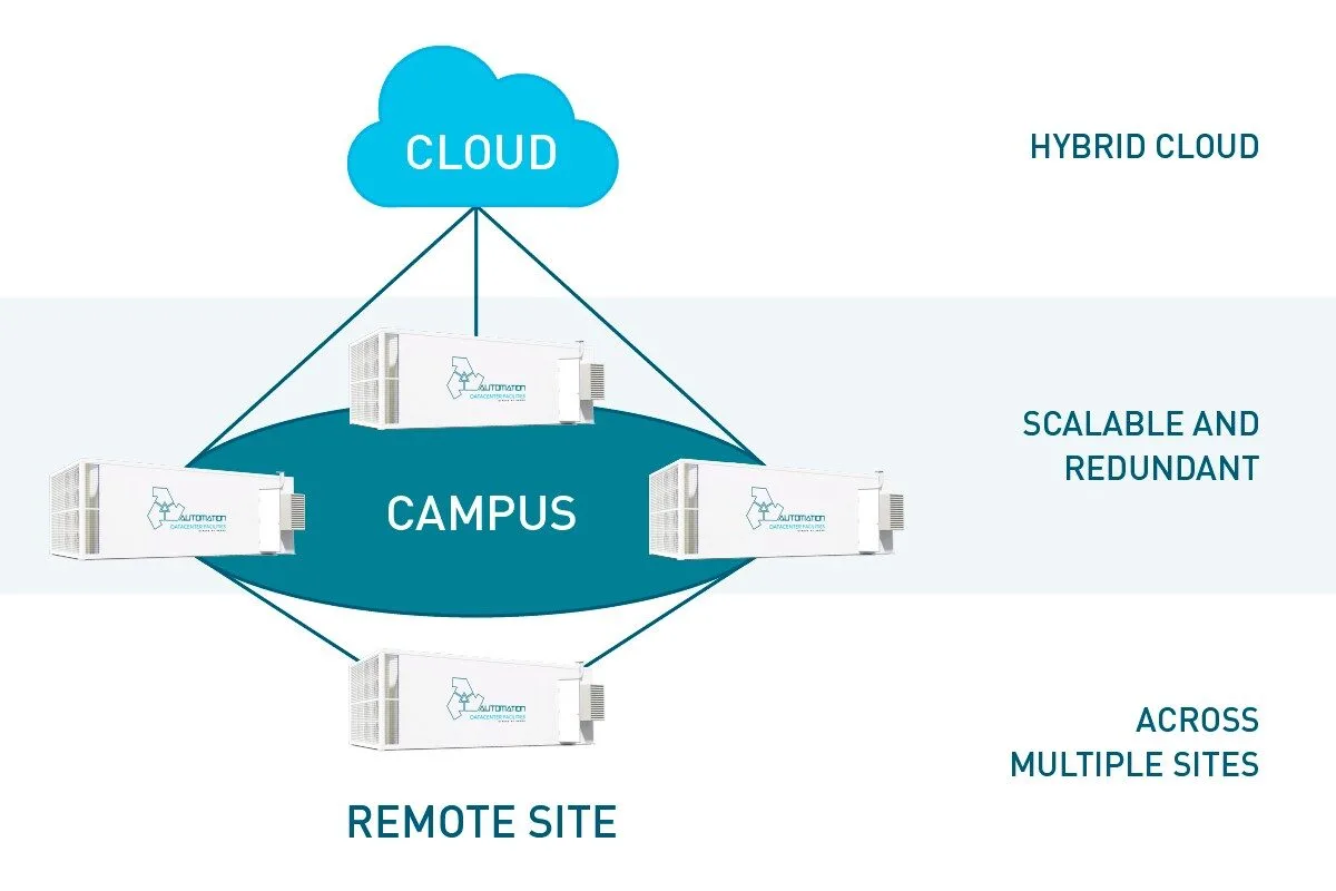 Rather than building a datacenter that can’t fail, the RAIDC concept proposes multiple SAFE All-in-One‘s deployed either on a campus, on a remote site or in a hybrid cloud configuration.